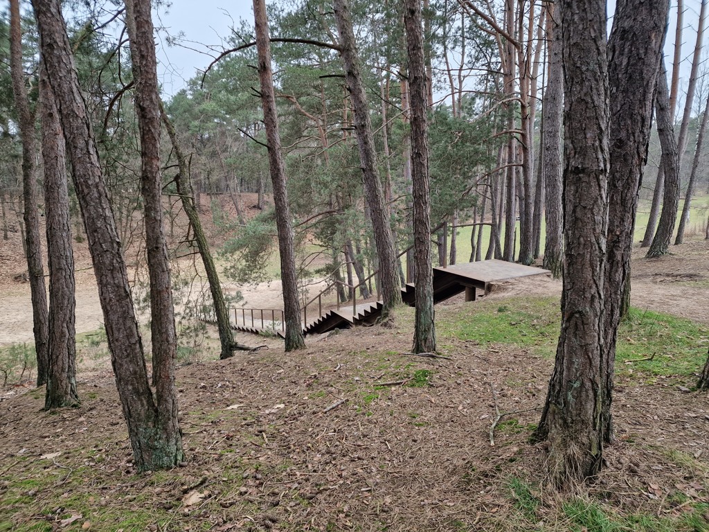 Van hieruit starten verschillende routes door het Hoenderlose en Ugchelse bos. Je kunt bijvoorbeeld wandelen naar Radio Kootwijk of de schaapkooi in Hoog Buurloo. Wij deden het boswachterspad Cultuurroute ’t Leesten. Een afwisselende route door bos, heide, langs het ven ‘Salamandergat’ en langs sprengen met de zeldzame beekprik. Langs de route staan ijzeren kunstwerken. Volg de paarse routemarkeringen.