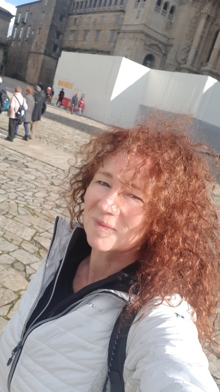 Ik schrijf dit blog in het vliegtuig. Ik ben onderweg naar huis. Ik wil je toch nog even vertellen hoe deze laatste dag is verlopen. Na het ontbijt in Hostelario San Martin Pinario (buffetontbijt, altijd goed) heb ik nog twee uurtjes op mijn kamer zitten werken. Tja, moet ook gebeuren. Je mag toto 12 uur in je kamer blijven, dat is fijn. Toen de stad in om in het zonnetje nog een selfie op het grote plein voor de kathedraal te maken. Ik vond daarna voor de eerste keer deze reis een postkantoor dat open was, dus die postkaarten die al anderhalve week in mijn buideltasje zaten, konden eindelijk voorzien van een postzegel op de post.