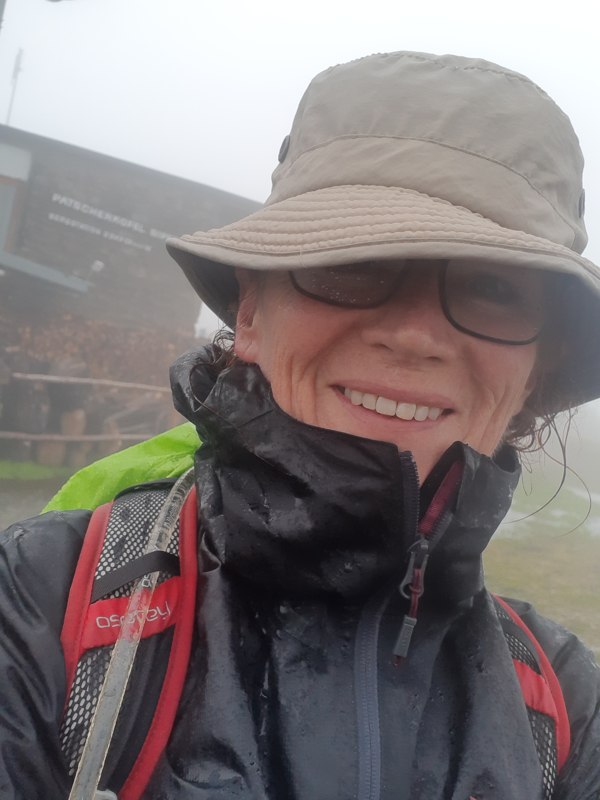 Toen ik de gordijnen opentrok zag ik het meteen: regen en geen berg meer te zien. Alleen maar één grote witte nevel. We hopen dat het allemaal nog wat bijtrekt, maar de weersvoorspelling is onverbiddelijk: 100% regen. Reden om het rustig aan te doen en eerst maar eens te genieten van het geweldige ontbijt in Sporthotel Schieferie. Gisteravond hadden we ook al zo goed gegeten. Het hotel verzorgt zelf geen maaltijden, daarom werden we verwezen naar Gasthof – Pension Lärchenwald. Een aanrader!