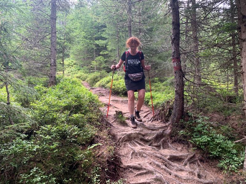 We zitten samen in de bus met het andere koppel dat ook tegelijk met ons de Innsbruck trek doet. Hij heeft zijn app weer opgestart en besluit over de Forstweg te wandelen. Wij volgen het boekje en pakken de Wurzelpfaden. We stijgen flink en kruisen zo af en toe de Forststasse waarover het andere koppel loopt. Onze route is wonderschoon.