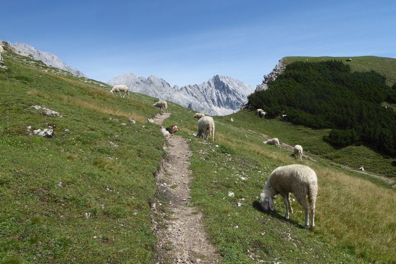 Na de pauze zijn we er helemaal klaar voor: we gaan de Wankspitze doen. Het is een extra klim van 500 meter over anderhalve kilometer, waarna we hetzelfde pad weer moeten afdalen. Het is prachtig! Voor het eerst krijg ik het gevoel ook echt hoog in de Alpen te lopen. We komen boven de boomgrens uit en het wordt steeds ruiger. Wat is het fijn om bovenop te staan!