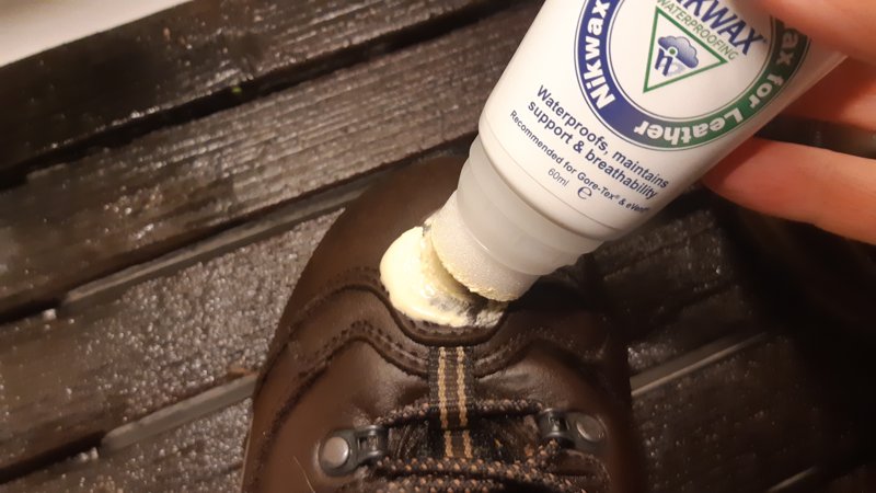 Ik ben een fan van de producten van Nikwax. Ze hebben een wijde ranch aan producten die je outdoor spullen verantwoord schoonmaken en impregneren. Ook voor het opnieuw waterproof maken van mijn leren wandelschoenen hebben ze een goed product, namelijk Nikwax Waterproofing Wax for Leather™. De wax maakt mijn schoenen niet alleen waterafstotend, maar het verzorgt ook het leer terwijl het toch stevig blijft en kan blijven ademen.