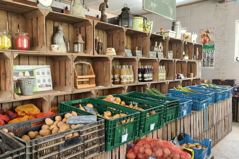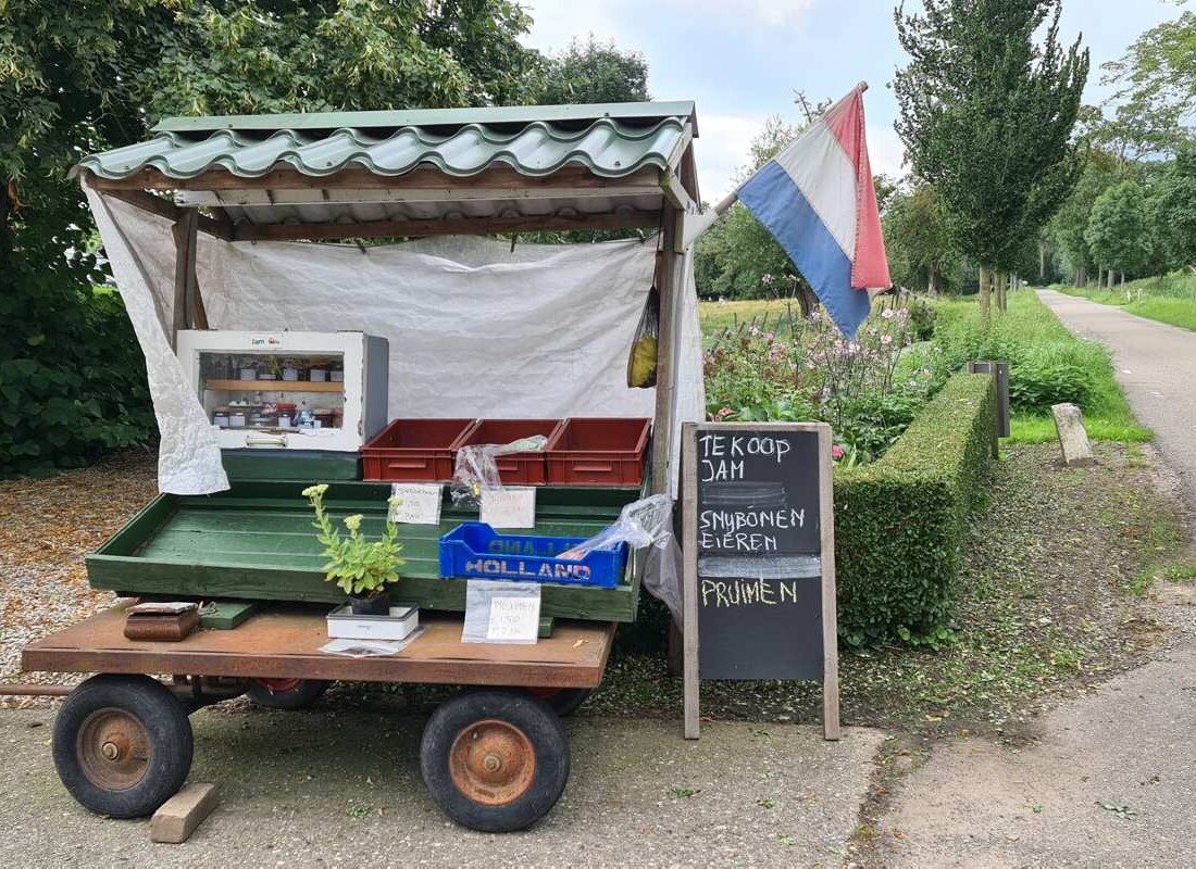 Fruitbedrijf Van Lint teelt fruit op een milieuvriendelijke manier, waaronder verschillende soorten appels, peren, pruimen, bessen en kersen. In de schuur van Van Lint vind ik naast het fruit ook kaas en eieren en groente uit de streek. In de tijd dat ik er zit, stoppen regelmatig fietsers die speciaal hier inkopen komen doen. Dat zou ik ook doen als ik hier in de buurt zou wonen. Heerlijk al die verse producten.