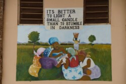 De lodge waar we verblijven is onderdeel van de Mama Clemantina Foundation (MCF). Het ligt naast de MCF Kilimanjaro Academy. Dat is een middelbare school waar meisjes de kans krijgen om te leren en zich te ontwikkelen tot zelfstandige vrouwen. Minder dan 50 % van de Tanzaniaanse kinderen maakt de lagere school af en dat zijn dan over het algemeen de jongens. Geldgebrek maakt dat ouders moeten kiezen en de voorkeur geven aan de jongens. Slechts 10 % van die kinderen doorloopt de middelbare school. De Academy is een kostschool. De meisjes krijgen vier jaar onderwijs en ronden hun middelbare school af met examens. Daarna kunnen ze nog 2 jaar doorleren en volgen er weer examens. Dan zijn ze klaar om naar de universiteit te gaan. De prachtige school bezit een eigen computerzaal, bibliotheek, verschillende laboratoria en een naaiatelier. Uiteraard is er ook een slaapzaal en eetzaal voor de meisjes. We krijgen een uitgebreide rondleiding. De kinderen zijn nieuwsgierig naar ons en giebelen wat achter hun hand. Ik vind het meestal wat gênant om zo in de persoonlijke levenssfeer van mensen rond te kijken en dat heb ik hier ook. Ik hou me daarom wat afzijdig.