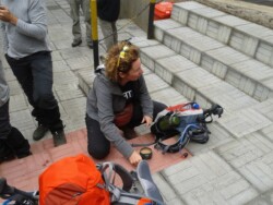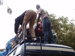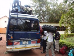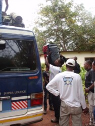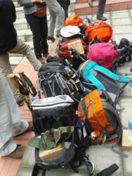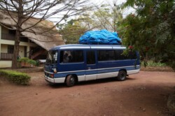 3 September 2014. Dan is het eindelijk echt zo ver. We worden in de ochtend opgehaald door onze gidsen die met een grote bus en een jeep komen voorrijden. Alle bagage wordt op- en ingeladen. Een prachtig schouwspel maar het duurt lang voordat we eindelijk op weg zijn.