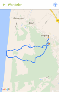 Vandaag doen Anja en ik mijn favoriete wandeling: De Noordzeewandeling. De route is 10 kilometer lang en zeer afwisselend. De Schoorlse duinen zijn uniek. Nergens zijn de duinen breder en hoger. Op sommige plekken zijn ze wel vijf kilometer breed. Het is klimmen en dalen over de paden. Langs vogelrijke bossen, open heide en golvende duinen.