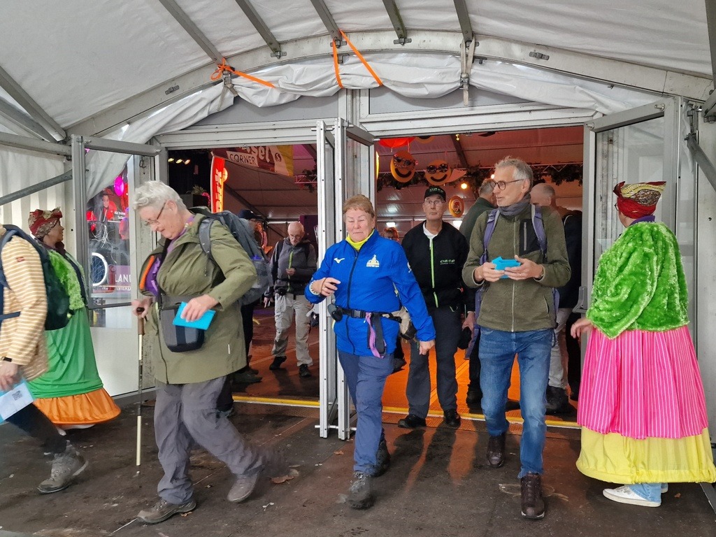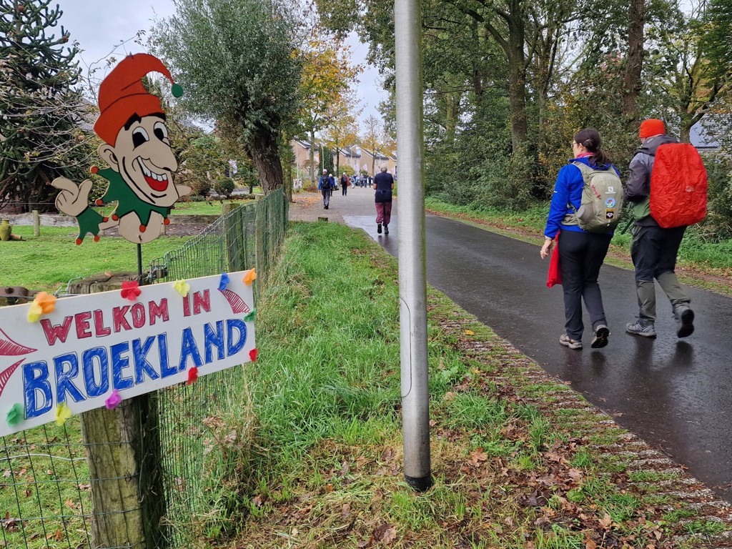 Onderweg wordt er van alles gedaan om ons aan te moedigen. Verklede dames, borden met aanmoedigende teksten, en hoe dichter we bij Broekland komen, hoe dichter de spreuken staan: “Kom op Jan, je kunt het!” en “Marjan, we zijn trots op je!” zorgen voor een glimlach op ieders gezicht.