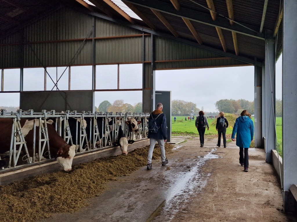 Wandelen door weilanden en koeienstallen