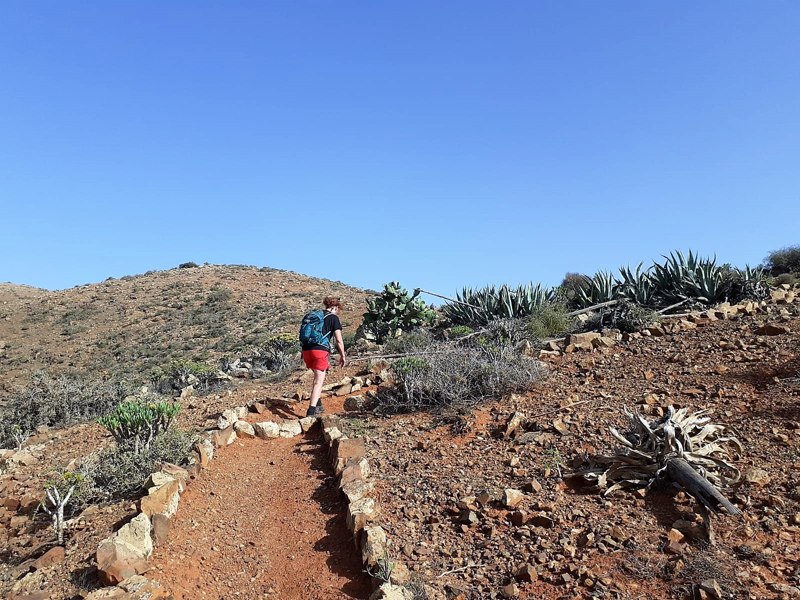 Hoog klimmen en ver kijken, dat is leuk. Vooral als dat midden op het eiland Fuerteventura is en je rondom het eiland kunt zien liggen. Op een heldere dag zie je zelfs het naburige eiland Lanzarote liggen. Dat is écht tof. Wij wandelden deze rondwandeling van 11,8 km, die begint in het plaatsje Tiscamanita, op een niet zo heldere dag, dus het uitzicht kon beter. Maar dat mocht de pret niet drukken, het blijft een heerlijke route.
