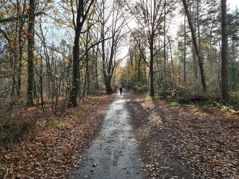 Ik ga het natuurgebied binnen en loop over een bospad. Links van me zie ik verschillende geheimzinnige paadjes die de diepte induiken. Daar wil ik eigenlijk ook naar toe, maar de route zegt rechtdoor. Bij het eerste de beste bankje stop ik. Het is tijd voor koffie en een broodje. Terwijl ik daar zo lekker zit te chillen komen er verschillende mensen langs die een praatje maken. Gezellig!