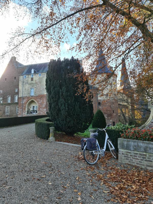 Veel te snel kom ik in het plaatsje Horn aan. Ik wandel langs de buitenrand en als ik denk dat ik afsla naar het centrum zie ik door de bomen kasteeltorens opdoemen. Dit is echt magnifiek. Ik loop langs kasteel Horn. Een bouwwerk uit de tijd van de hertogen, waar de route die ik loop naar vernoemd is. Hier woonde in de zestiende eeuw de Graaf van Hoorne. In die tijd lag het kasteel aan de oever van de Maas, die nu een heel stukje verderop ligt.