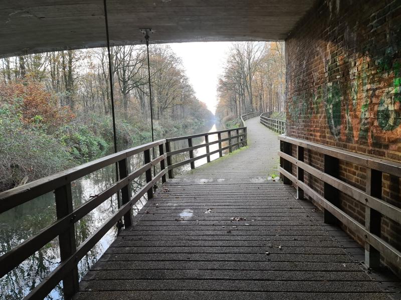 Ik zet er daarom ook flink de pas in om mijzelf warm te lopen. Het treft dat ik geen ingewikkelde route heb. Als ik bij het kanaal van Deurne aankom wordt het helemaal gemakkelijk. Ik kan het kanaal over een lengte van wel 4 km gewoon blijven volgen. Het loopt heerlijk langs het water.