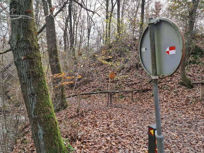 Nu ik weer tot rust gekomen ben probeer ik mij opnieuw te oriënteren. Dat is lastig. Ik zie geen rood-witte markering en start daarom de GPS route op, die ik eerder thuis op Viewranger heb ingeladen. Dat is gemakkelijker. De komende dagen zal blijken dat ik meerdere malen gered word door de GPS. De routemarkering van het Hertogenpad laat nog wel eens wat te wensen over.