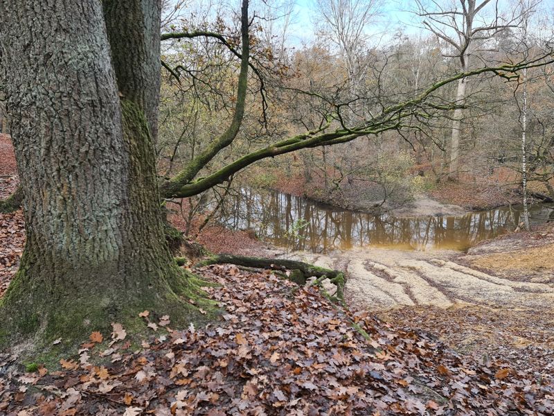 Bij een grote rotonde verlaat ik het kanaal en wandel richting twee natuurgebieden die tegen elkaar aanliggen: Waterbloem en Weijenhout. Vroeger waren dit natte bossen. Staatsbosbeheer probeert nu het natte toch weer voor een deel terug te krijgen. Er komt ijzerrijk kwelwater uit de grond en er bloeien hier zeldzame planten. Niet nu. Nu is het paddenstoelentijd.