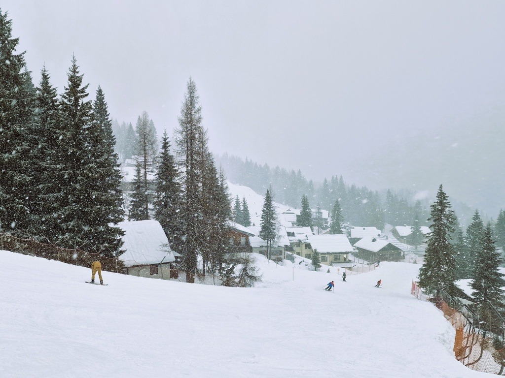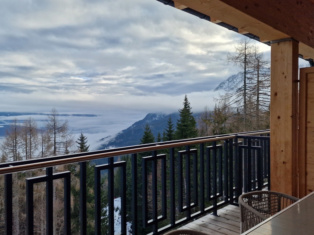 Bij aankomst werden we compleet overrompeld door de luxe van het appartement. Wat een ruimte en wat een comfort! Het appartement heeft twee verdiepingen, vier slaapkamers, twee badkamers (waarvan één met was- en droogautomaat), een complete keuken en een grote woonkamer met een heerlijke eettafel voor gezellige avonden. En dat uitzicht! Vanuit het balkon keken we uit over de bergen die er steeds weer anders uitzagen. Soms verstopt in de mist, gehuld in een sneeuwbui of romantisch in de avond met lichtjes hoog op de bergen – alsof we in een steeds veranderend schilderij leefden.