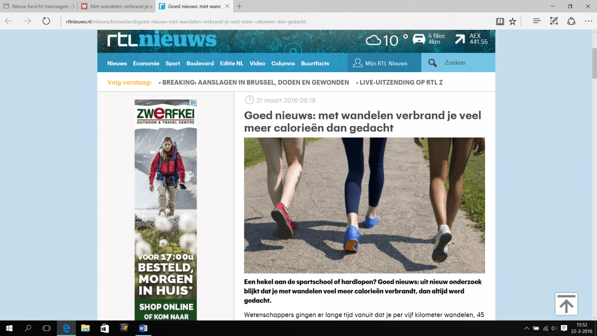 Het bericht waar het om ging was een nogal populistisch geschreven berichtje van RTL Nieuws Binnenland. Het bericht zegt dat wetenschappers er altijd vanuit zijn gegaan dat je per 5 kilometer wandelen, elke kilometer 45 kcal verbrandt. Dat klopt niet, zeggen onderzoekers van de Southern Methodist University: 97% van de onderzochten verbrandt meer calorieën. De reden daarvoor is dat bij eerdere studie te veel werd uitgegaan van slanke mensen, die relatief minder calorieën verbranden. Ook werden er steeds relatief te weinig wandelaars onderzocht zodat er geen realistisch beeld gegeven kon worden.