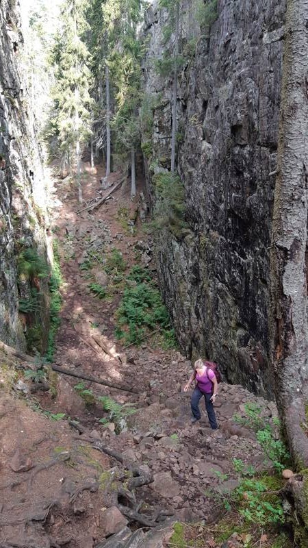 De aanlooproute en de route terug naar de parkeerplaats zijn langer dan de route door de kloof zelf. Kijk, Anders wijst het je even aan.