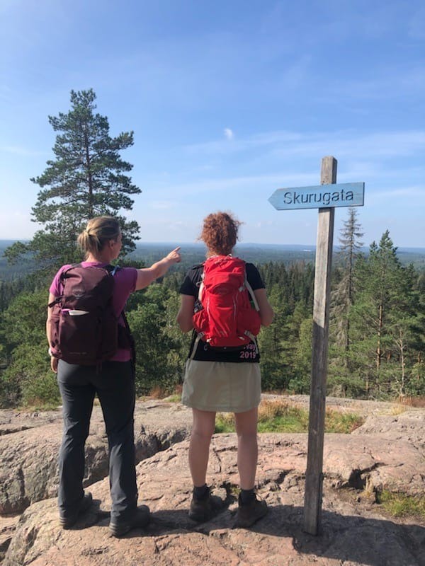 Soms kan rijden door Zweden echt heel saai zijn: bomen, bomen, bomen, meertje, bomen, bomen, bomen, meertje, bomen. Ik hou van overdrijven en het was deze keer echt niet zó erg, maar ik vroeg me wel af wat het zou gaan worden vandaag. We worden meegenomen op een wandeling waarvan we niet weten wat we ervan verwachten mogen. “Het wordt echt prachtig”, was ons verzekerd. Maar voorlopig zag ik alleen maar bomen.