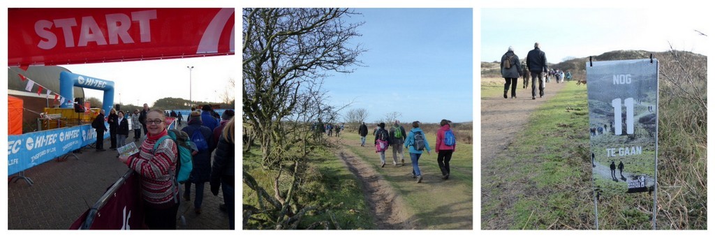 Januari is niet mijn maand; meestal koud en nat waardoor ik weinig zin heb om naar buiten te gaan. Vanachter mijn warme kachel verzon ik de Facebookbookpagina #Wandel1000km in 2016. Daar heb ik het hele jaar plezier van gehad; wat een leuke community van mensen die elkaar motiveren en inspireren. Mijn wandeljaar startte traditioneel met de dubbele halve marathon van Egmond. Samen met vriendin Sally maakten we daar een super leuk weekend van: hotelletje, lekker eten, veel lachen en ook nog wel stevig wandelen.