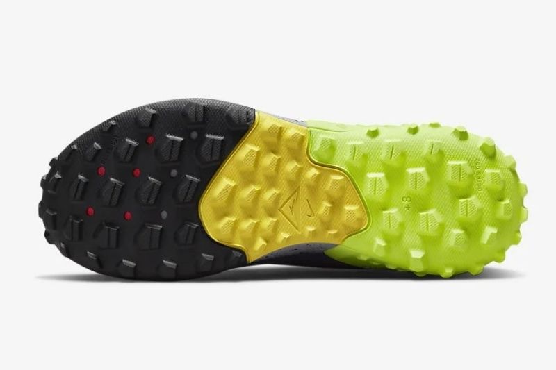 Ook de buitenzool is aangepast. Trailrunners hebben een zool die op basis van rubber is gemaakt, zodat de zool wat kleverig is waardoor je meer grip hebt. Ook de brede, hoge profielnoppen zijn afgestemd op ruig terrein en verhogen de grip.