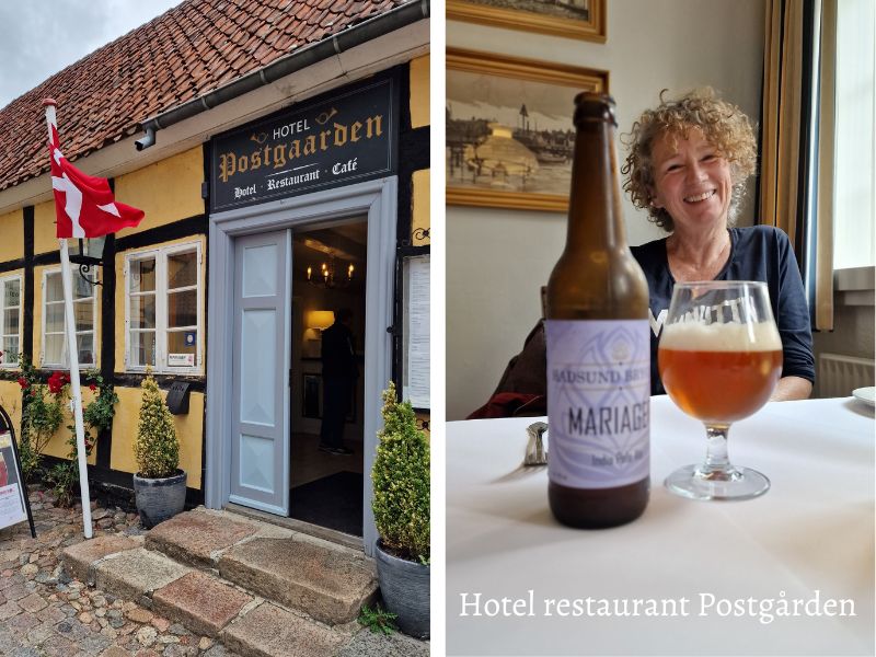 Ook het pand van Hotel Postgården is heel bijzonder. Dit langwerpige vakwerkhuis stamt uit 1710. Het bevat fijne hotelkamers, een restaurant en een café. Na onze stadswandeling bezochten wij het restaurant. Hoewel het pand helemaal gerestaureerd is, is de sfeer nog authentiek. En lekker eten dat je je er kunt! Neem vooral een visgerecht en het lokale biertje.