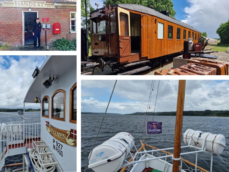 Het is een echt toeristisch dingetje, maar het blijft leuk; een rit maken met een historisch treintje en varen met een boot over een fjord. In Mariager kun je de twee combineren. In de maanden juni, juli en augustus zijn er op donderdag en zondag mogelijkheden om dit te doen. Wij maakten eerst met de boot een tocht over het Mariager Fjord van de haven van Mariager naar Hobro. Daar werden we opgewacht door een bus die ons met een korte rit naar het stationnetje van Handest bracht. Rustig boemelend door het Deense platteland kwamen we weer terug in de haven van Mariager. De boot en trein gaan meerdere malen per dag en je kunt verschillende combinaties maken.
