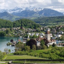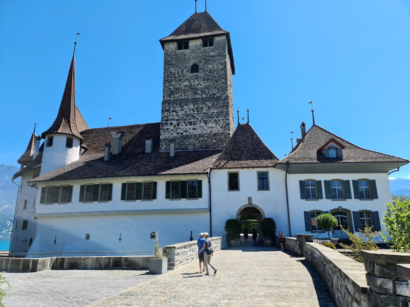 Zo gaat het door tot ik bij de badplaats Spiez aankom. Vanuit de hoogte zie ik het kasteel al liggen. Er worden druiven verbouwd op de hellingen boven Spiez.