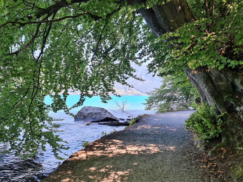 Van Spiez tot Faulensee is een heerlijke relaxte wandelroute. Op een pad langs het water onder de bomen is het genieten. Ik moet mijzelf inhouden om niet van elke nieuwe hoek een foto te maken.