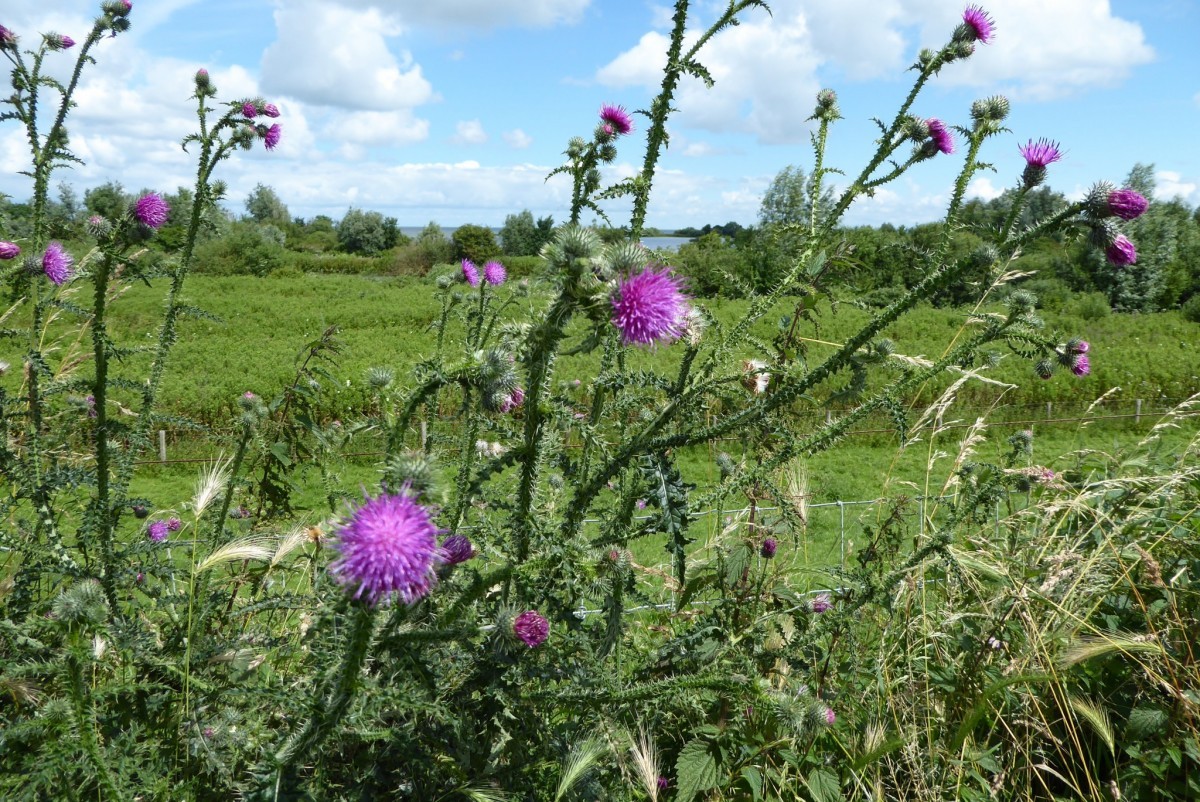 Bovenop de dijk is van Enkhuizen tot aan Wervershoof een fietspad aangelegd. Dat loopt heerlijk en omdat het een rustige ochtend was hadden we weinig last van fietsers. Links en rechts is er van alles te zien. Het is heel bijzonder om zo bovenop een dijk te lopen. In Andijk komen we langs theetuin De Libel. Weer niet nagedacht: ik heb mijn rugzak vol met koffie en gezonde dingen. Pauze bij de Libel was eigenlijk veel fijner geweest, want het is goed toeven daar en ze hebben de heerlijkste dingen. We besluiten om door te stappen. We vinden een ander idyllisch plekje met een picknicktafel langs het water. Ook fijn. Maar toch…