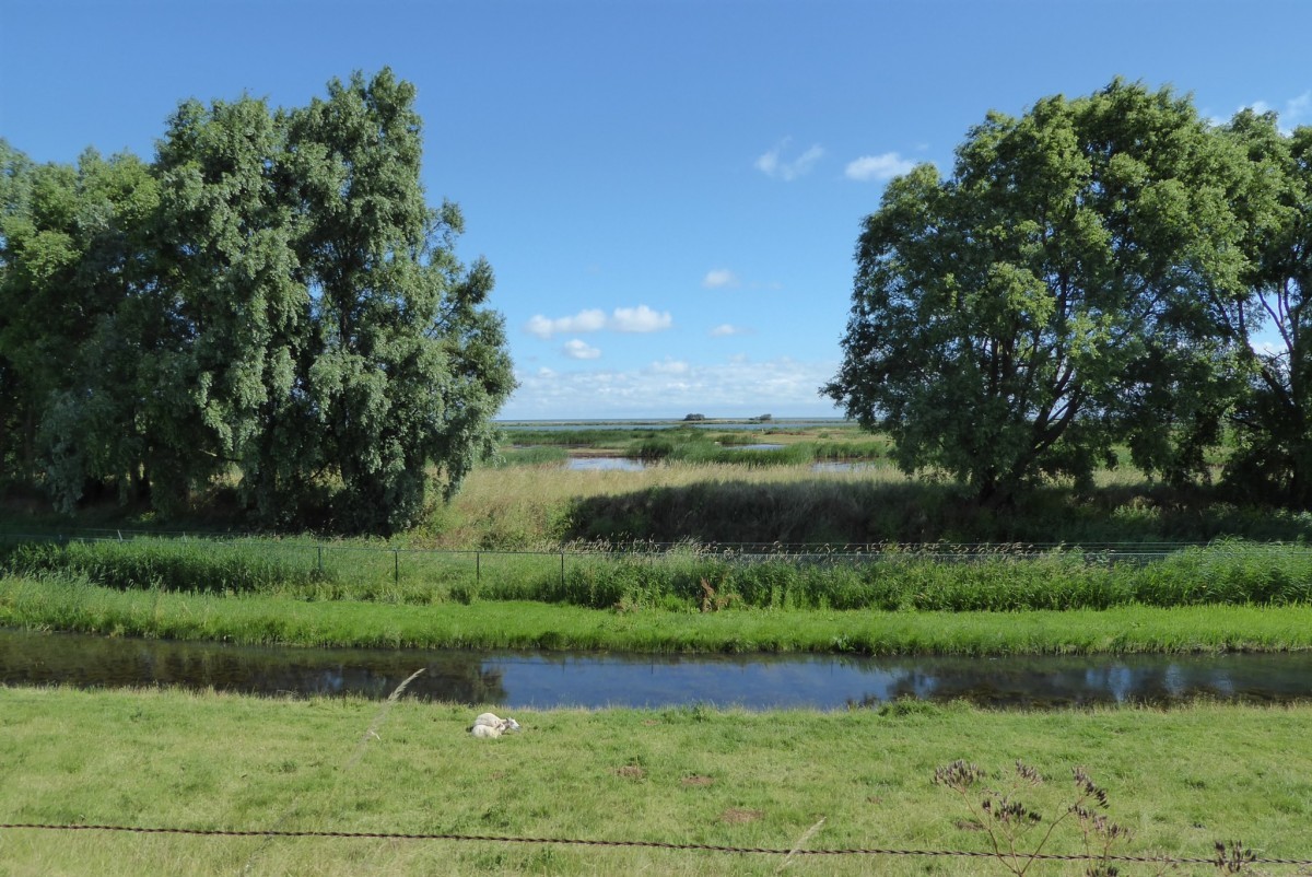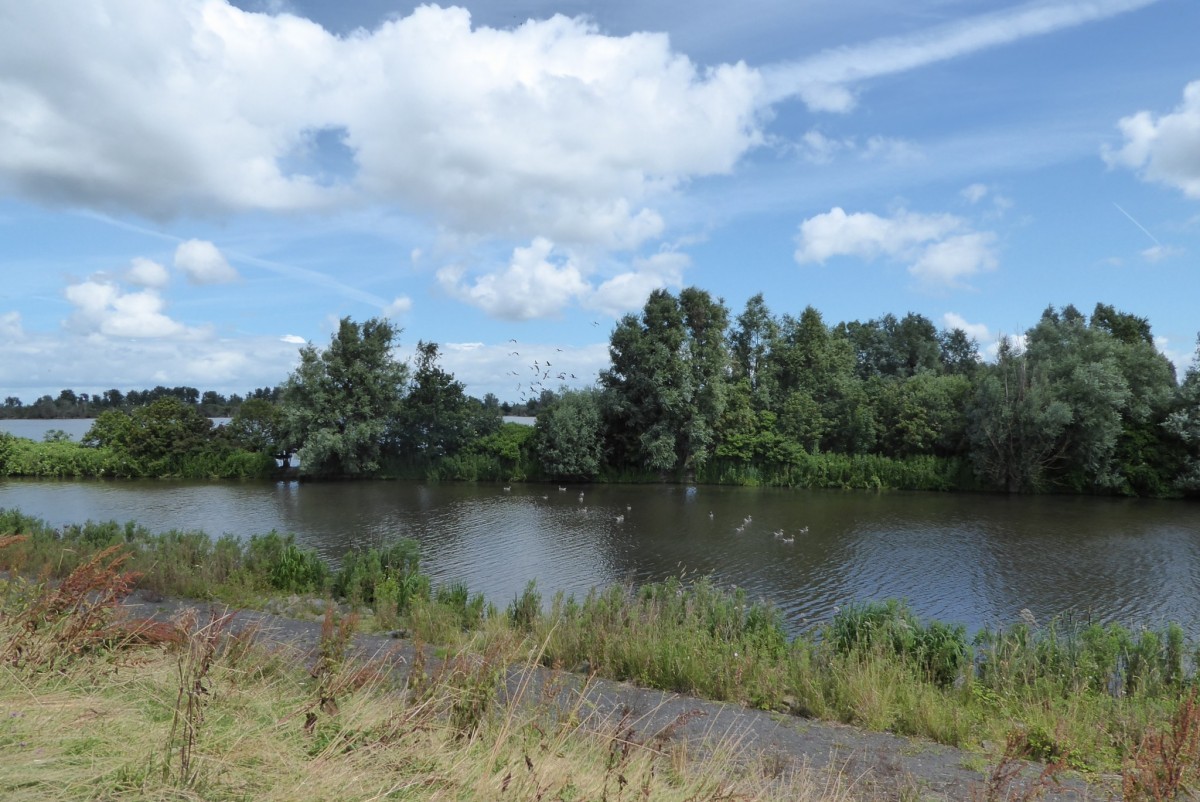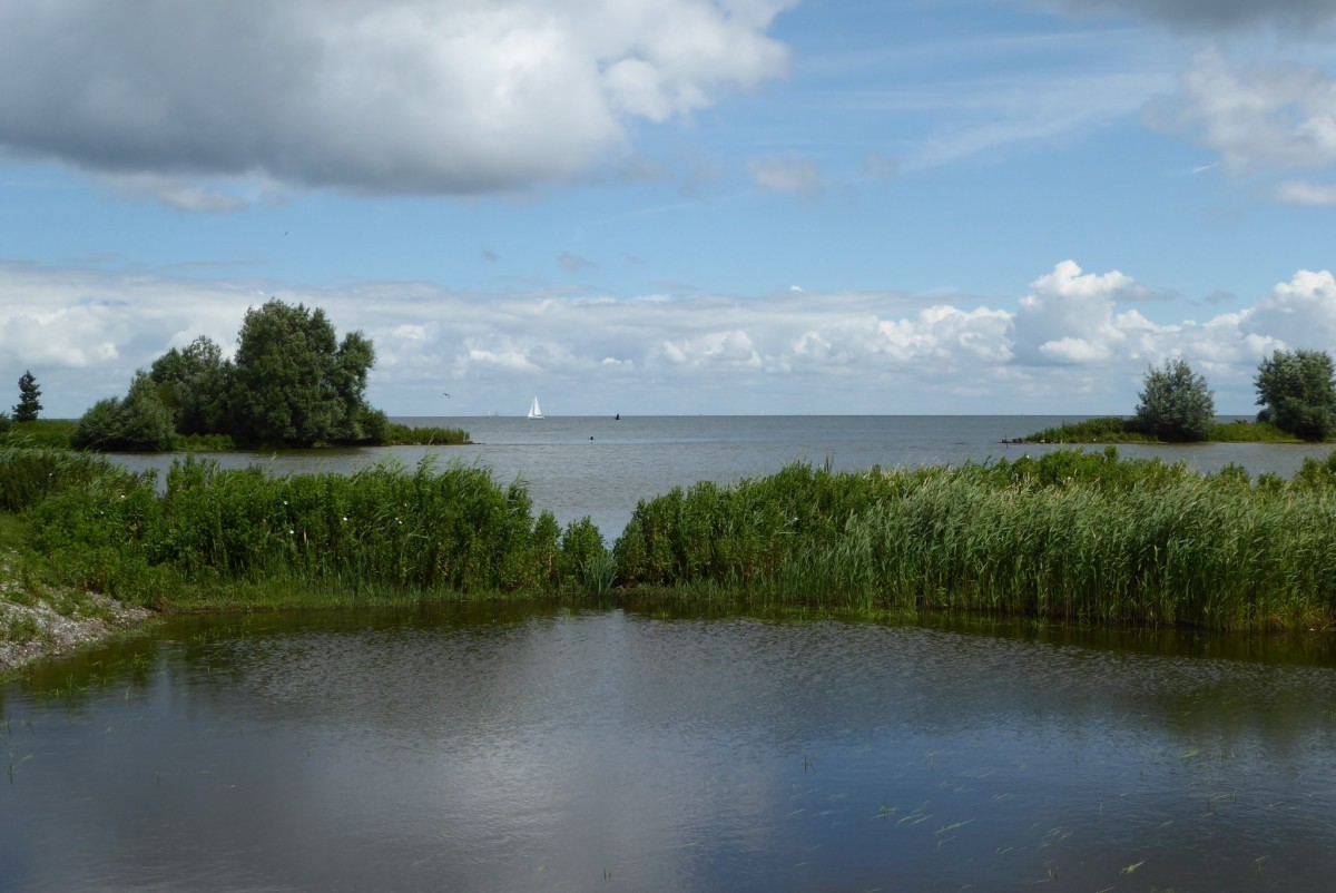 We lopen nu niet meer op de dijk maar aan de IJsselmeer kant door het Vooroever. Bij het Stoomgemaal Museum moeten we even de dijk op, om meteen weer naar beneden het natuur- en recreatiegebied in te gaan.