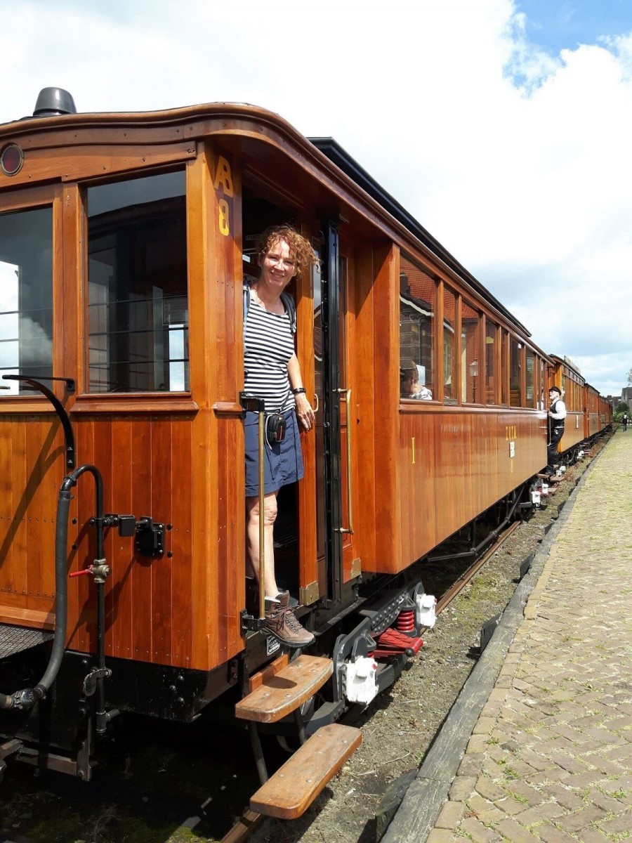 We wandelen door en komen in Medemblik aan. We blijven het water aan onze rechterhand houden en lopen zo vanzelf langs kasteel Radboud. Tijd voor bezichtiging hebben we niet. We hebben nu bedacht dat we de trein moeten halen. De stoomtrein welteverstaan want Medemblik is leuk, maar de moderne NS kennen ze niet. We lopen door het mooie Medemblik en zijn ruim op tijd om een ouderwets kaartje te kopen.