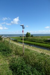 De route is simpel en er is geen GPS tracking nodig. Je loopt bovenop de dijk en als je dat maar blijft doen en het IJsselmeer aan je rechterhand houdt, kom je vanzelf in Medemblik aan. Wij kennen de weg op ons duimpje tot Andijk. Bijna elke week wandelen we wel de vuurtoren op en neer. Maar vandaag passeren wij vuurtoren De Ven en maken we eens een foto van de andere kant.