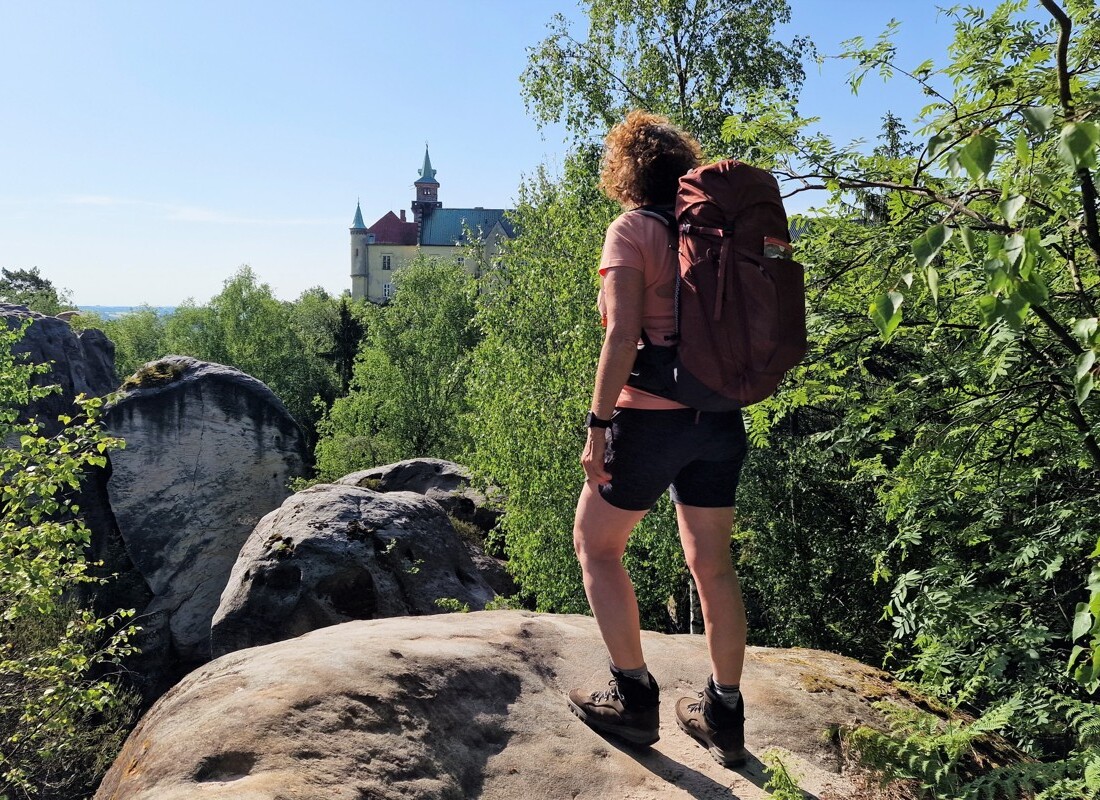 Vandaag is de laatste dag. Dat is jammer, want het is genieten hier in het Boheems Paradijs. Voordat we echt op pad gaan maken we eerst een omweg om vanaf een mooi uitkijkpunt foto’s van het kasteel te kunnen maken.
