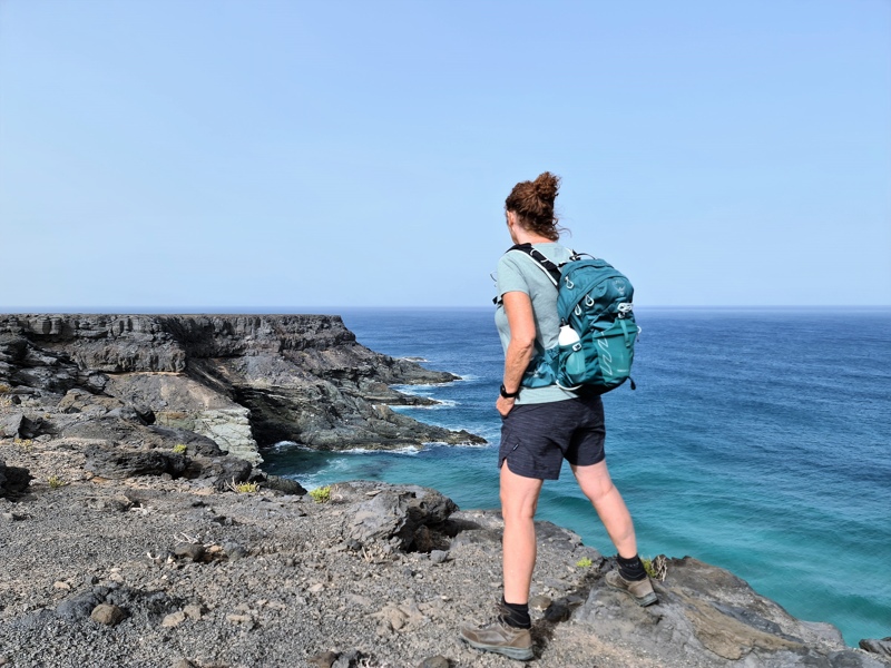 Vandaag staat een wandeling langs de hoge kliffen langs de ruige westkust van Fuerteventura op het programma. Sabine en Pascal bekijken per dag welke wandeling geschikt is. Dat is voornamelijk afhankelijk van de weersomstandigheden. Vandaag is een mooie dag met weinig wind, dus uitermate geschikt om de spectaculaire klifwandeling te maken.