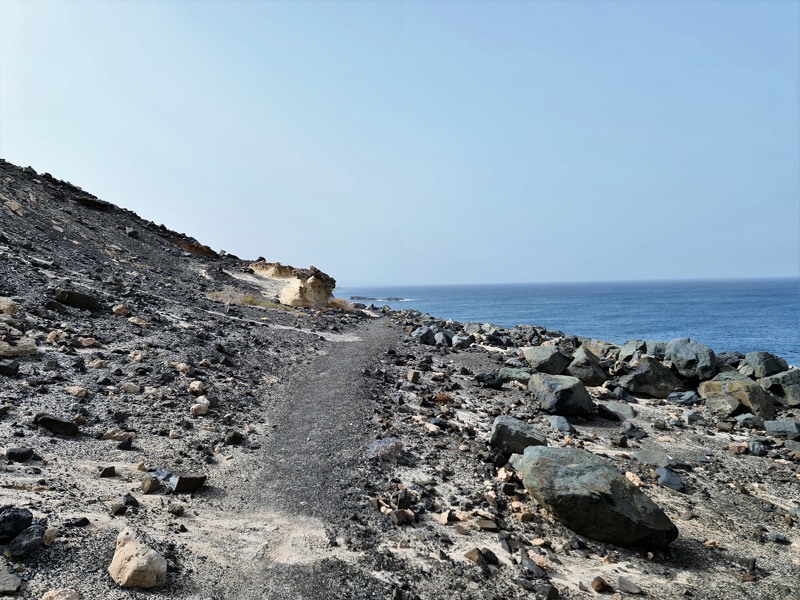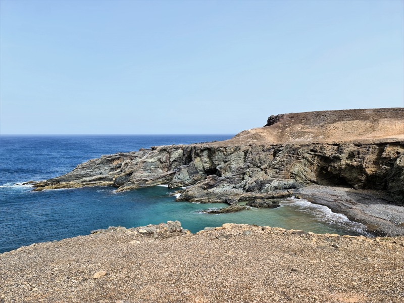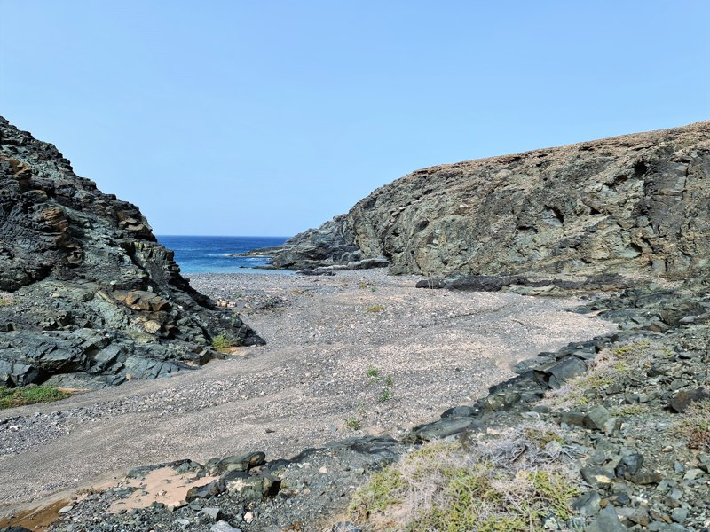 We rijden vanuit Tefia een doodlopende weg in richting Puertito de los Molinos. Dit gehucht aan de westkust Fuerteventura heeft minder dan 20 vaste bewoners. Er staan wat vakantiehuisje en een restaurant Casa Pan, waar je naar verluid heerlijke vis kunt eten. Dat gaan we later doen, eerst gaan we wandelen.