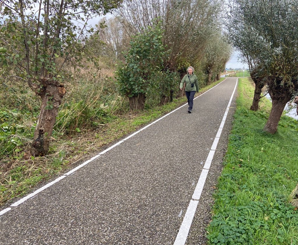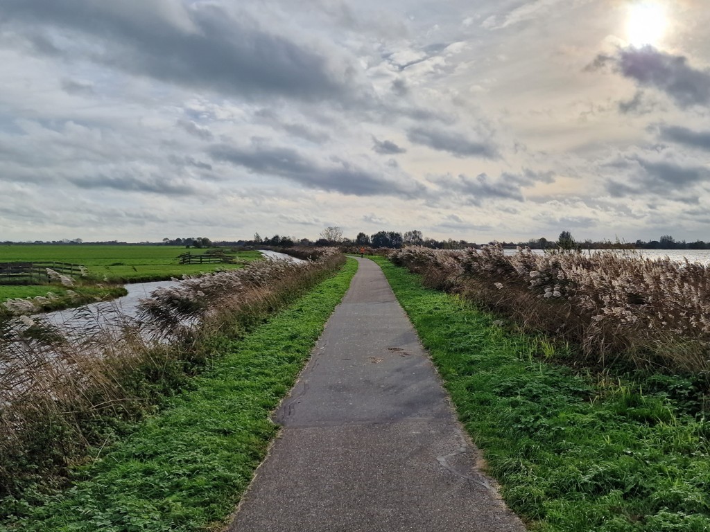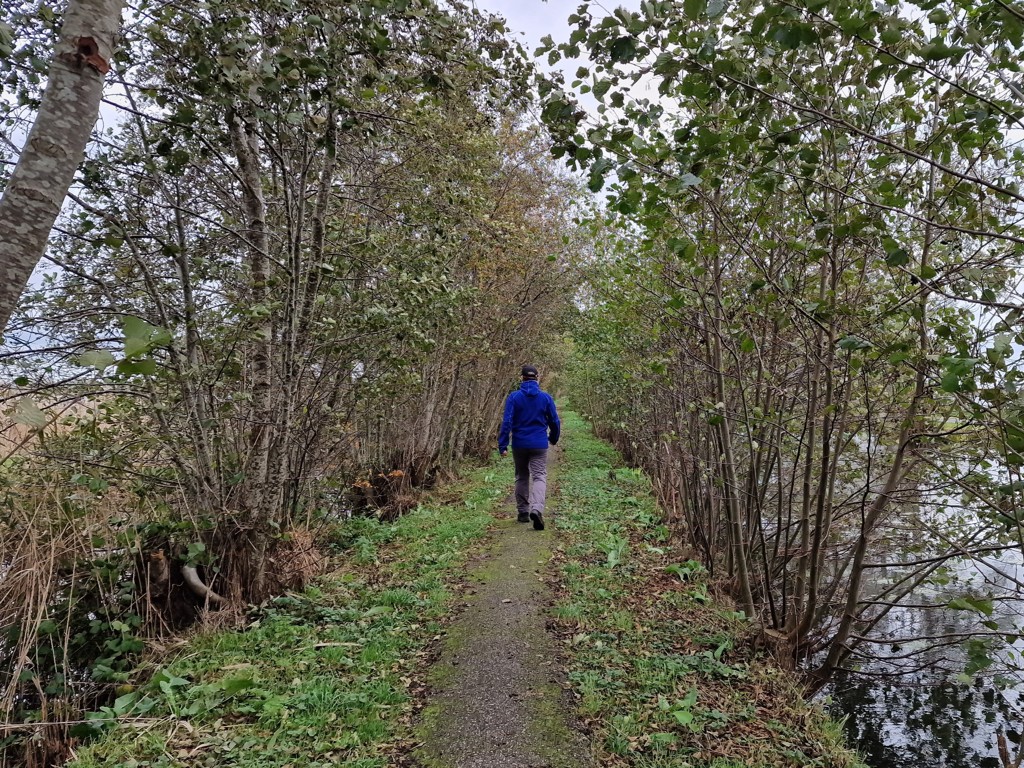 Het is hier rustig. Ik denk dat het scheelt dat het een donkere dag in november is, waarin veel regen is voorspeld. We hoeven maar een enkele keer aan de kant voor een fietser. We zien duizenden eenden op het water en wandelen over paadjes die steeds smaller worden. Ik ben blij dat ik mijn verrekijker mee heb. Af en toe stil staan om de natuur op je te laten inwerken is heerlijk.